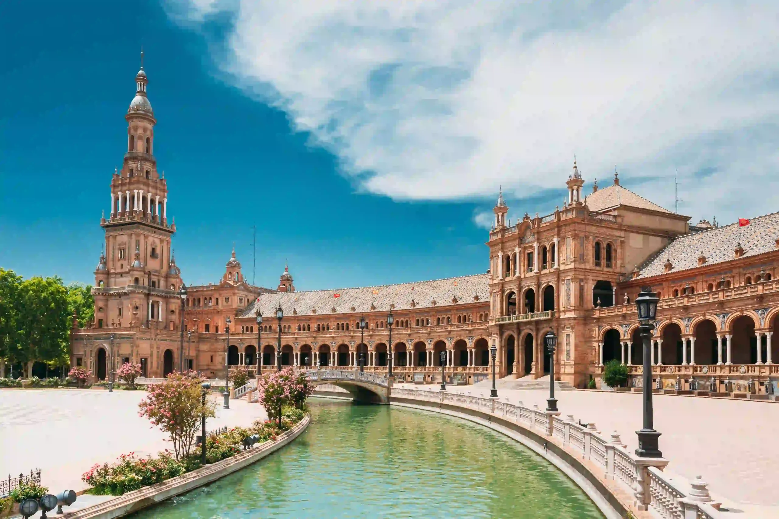 After breakfast, explore Seville’s major highlights on a shared guided tour. Visit the Seville Cathedral, climb the Giralda Tower for panoramic views, and walk through the Royal Alcázar’s courtyards and gardens. Return to the hotel for an overnight stay in Seville.